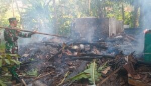 “Begitu menerima laporan, kami bersama aparat desa dan warga langsung berupaya memadamkan api menggunakan alat seadanya sambil menunggu bantuan. Setelah api padam, kami juga membantu mengamankan barang-barang yang masih bisa diselamatkan,” ujar Koptu Nopy.