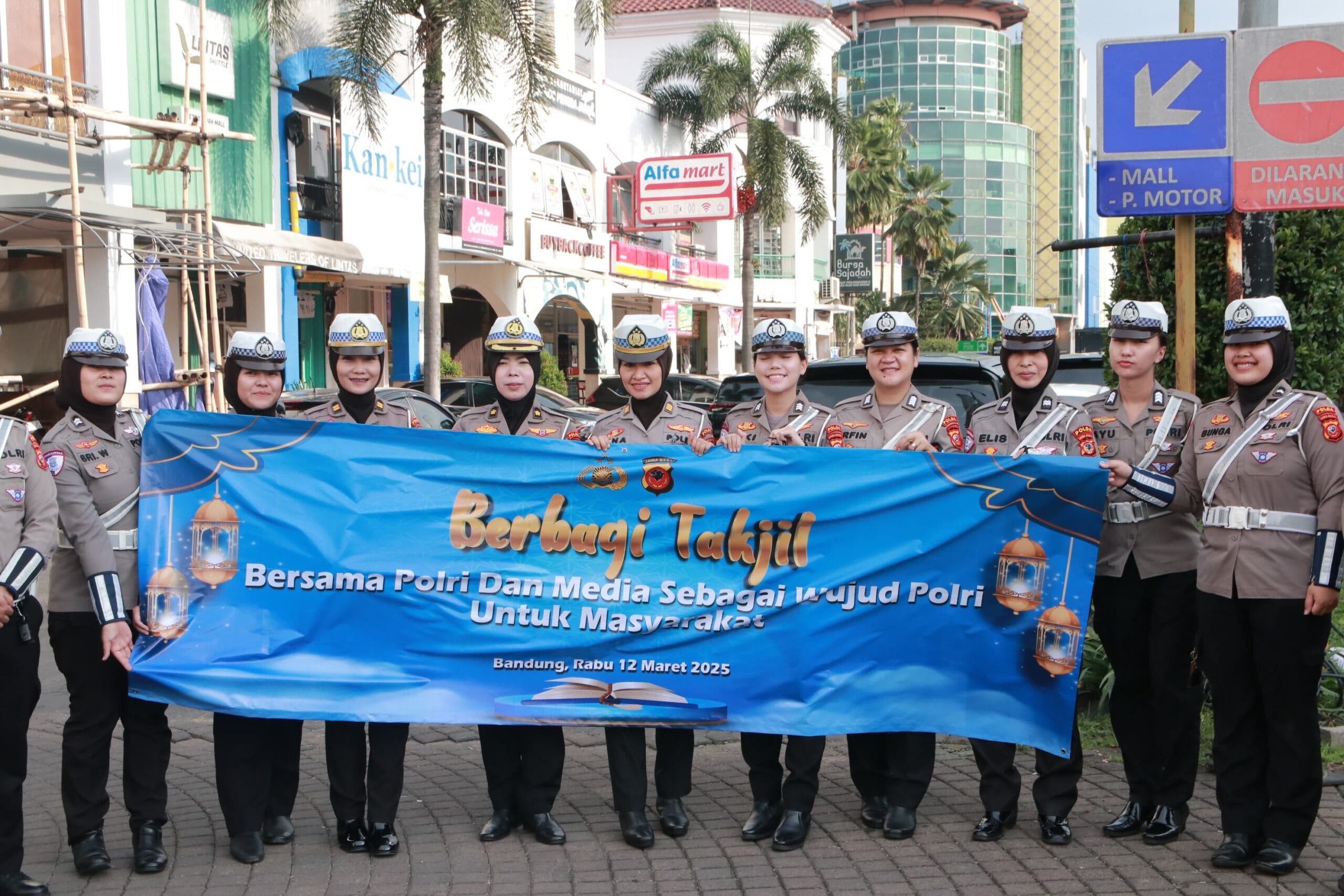 Suara Gemilang || Polri bersama media berbagi takjil untuk berbuka puasa di bulan suci Ramadan. Kegiatan ini dilakukan serentak di seluruh Indonesia dan bertujuan untuk mempererat hubungan antara Polri, media, dan masyarakat. Acara berlangsung di Jl. Sukarna-Hatta, depan Metro Indah Mall, Kota Bandung, pada Rabu, 12 Maret 2025.